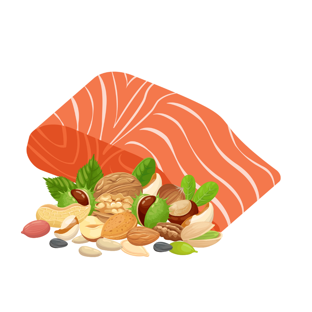 It is found abundant in the fatty fish such as salmon, sardines, and others like ikan tenggiri papan, ikan tenggiri batang, and ikan kembung. Omega-3s not only support brain health but also regulate serotonin levels, promoting relaxation and contributing to better sleep.