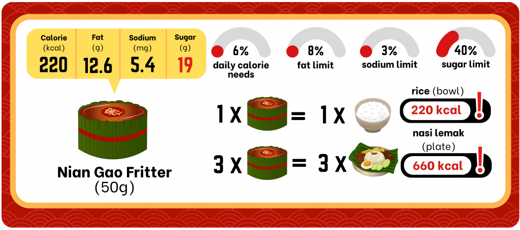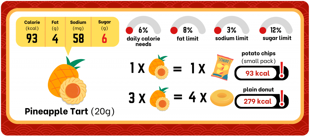 CNY snacks may be bite-sized, but don’t be fooled–they can be packed with hidden calories, fat, sugar and salt that can quickly add up.