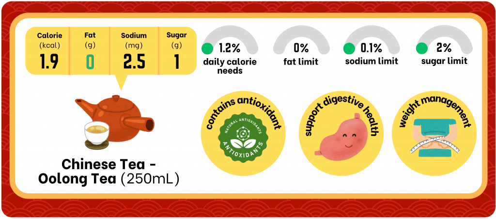 Oolong tea is a perfect balance of green and black tea, giving you a fragrance taste with 1.9 calories in a cup! It is well known for its antioxidant effect, supports digestive health, and helps in weight management. If you need a healthier option for drinks, just opt for oolong tea, your taste buds and waistline will thank you!