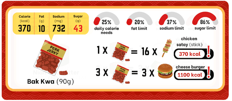 CNY snacks may be bite-sized, but don’t be fooled–they can be packed with hidden calories, fat, sugar and salt that can quickly add up.